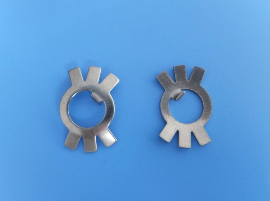 螺母扳擰槽所對應的墊圈外齒應折彎嵌入槽中,這樣螺母就被固定了,圓螺母止退墊圈內外都有齒,與圓螺母所配合的外螺紋上應制出孔眼或槽以納入墊圈內齒,圓螺母旋緊就位后。